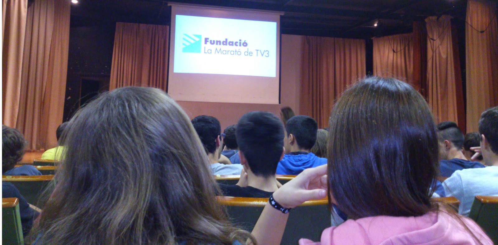 | Alumnes de 4t ESO mirant un vídeo-regal fet per professors |