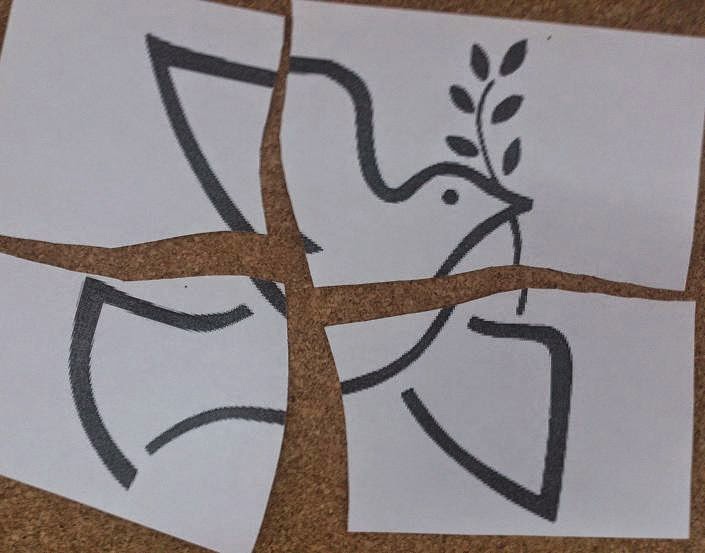 configurant un mural d’un colom de la pau i una bafarada amb lemes d’igualtat, justícia