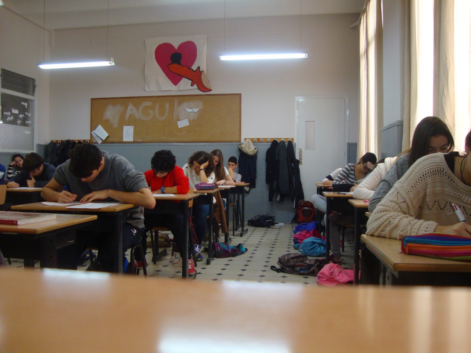 El dimecres 11 de març a la nit, els alumnes de 4t d'ESO; amb la companyia de professor, particularment de la Teresa Borràs; van iniciar el dibuix del nou mural que adorna el mur de formigó del pati.